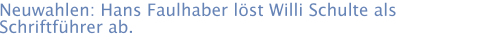 Bei der Generalversammlung standen in diesem Jahr Neuwahlen an. Hans Faulhaber wurde zum neuen Schriftführer gewählt und löst damit Willi Schulte ab, er war 4 Jahre in diesem Amt tätig. Willi Schulte ist nun als Mitglied des Förderrats tätig, Hans Faulhaber wechselt mit dem Amt des Schriftführers vom Förderrat in den Vorstand. Ansonsten wurden sämtliche Vorstands- und Förderratsmitgieder wieder in Ihre Ämter gewählt.