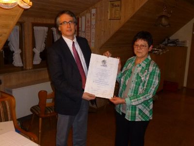Erste Vorsitzende Inge Nieder und IZ-Redaktionsleiter Ronald Hinzpeter bei der Übergabe der Silberdistel.......